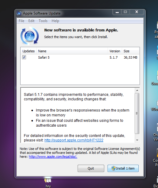Safari 5.1.7 obsahuje vylepšení výkonnosti, stability, kompatibility a zabezpečení, včetně následujících: